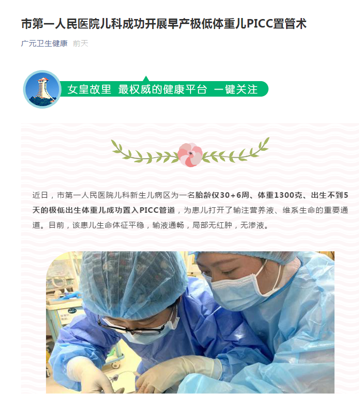 广元卫生健康:市第一人民医院儿科成功开展早产极低体重儿PICC置管术...
