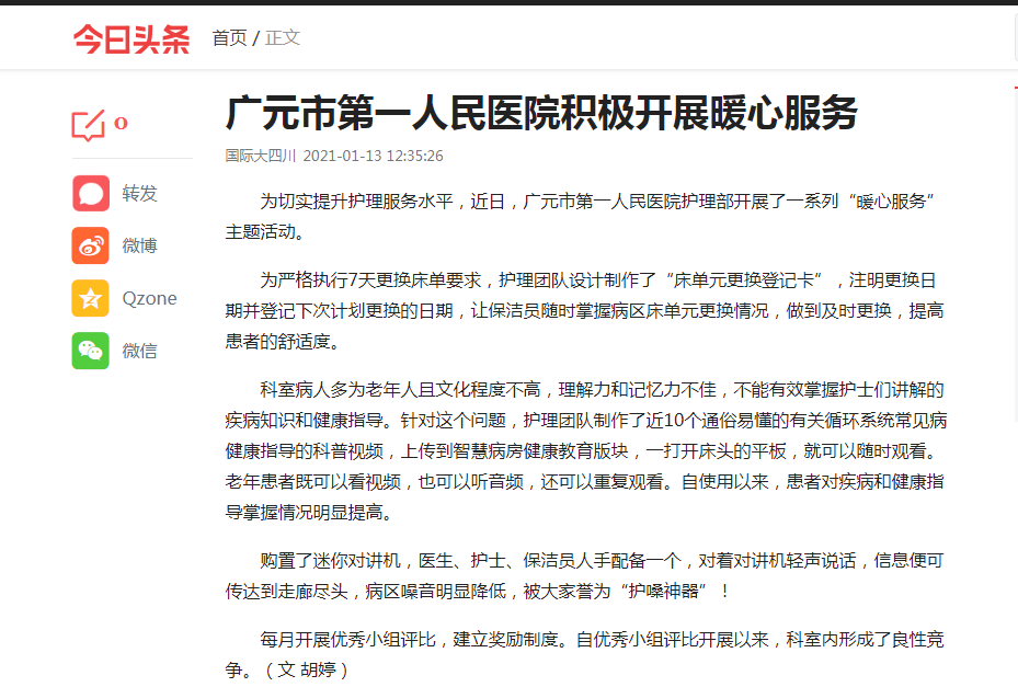 国际在线:广元市第一人民医院积极开展暖心服务