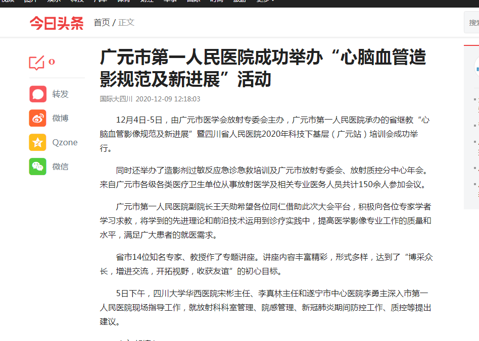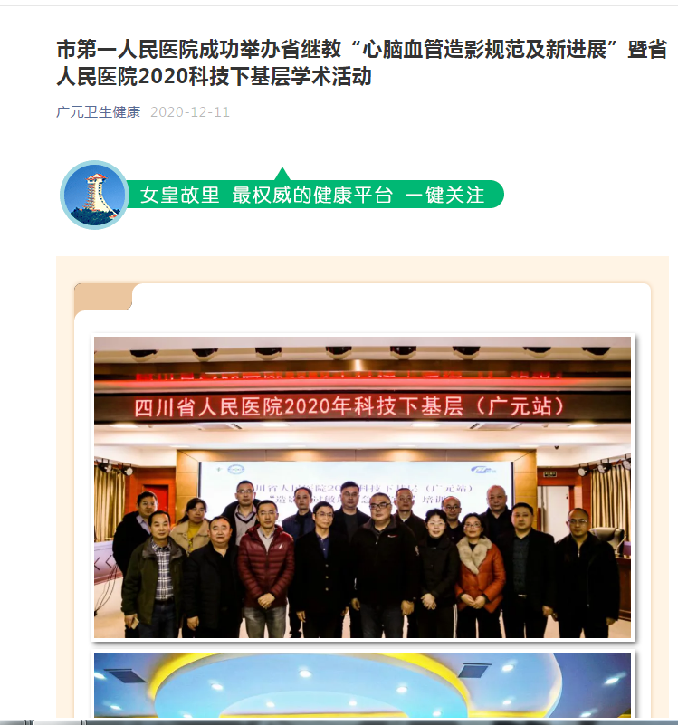 广元卫生健康:市第一人民医院成功举办省继教“心脑血管造影规范及新进展”暨省人民医院2020科技下基层学术活动