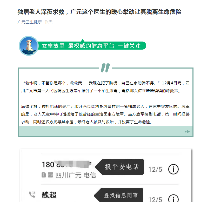 广元卫生健康:独居老人深夜求救,广元这个医生的暖心举动让其脱离生命危险