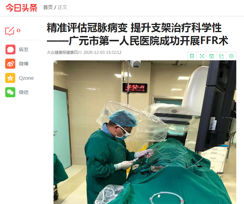 今日头条:精准评估冠脉病变 提升支架治疗科学性——广元市第一人民医院成功开展FFR术