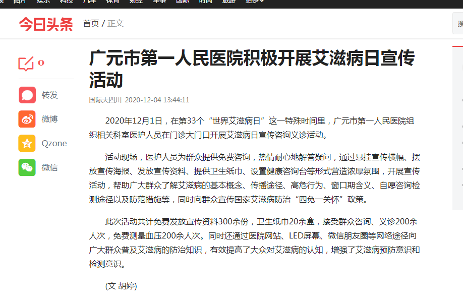 国际在线:广元市第一人民医院积极开展艾滋病日宣传活动