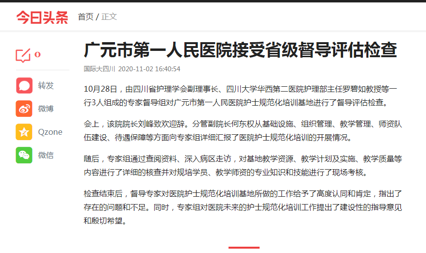 今日头条(国):广元市第一人民医院接受省级督导评估检查