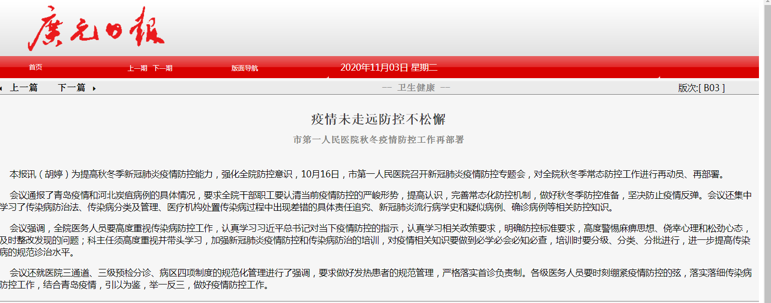 广元日报:疫情未走远防控不松懈 市第一人民医院秋冬疫情防控工作再部署