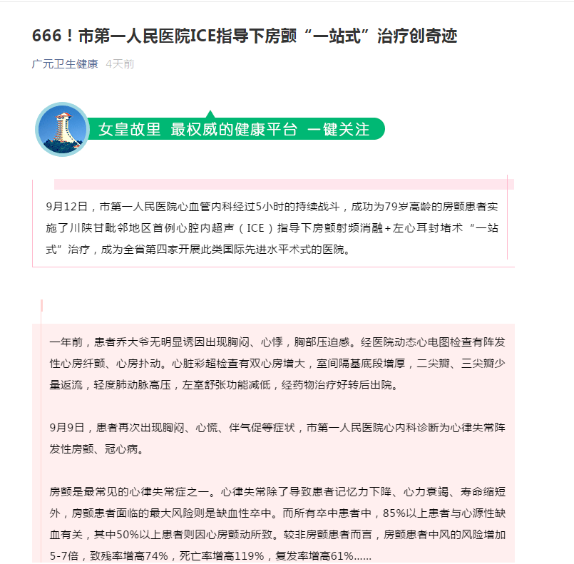 广元卫生健康:666!市第一人民医院ICE指导下房颤“一站式”治疗创奇迹
