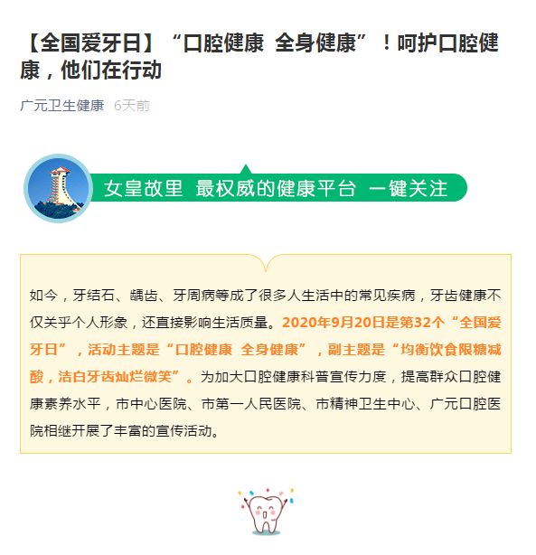 广元卫生健康:【全国爱牙日】“口腔健康 全身健康”!呵护口腔健康,他们在行动