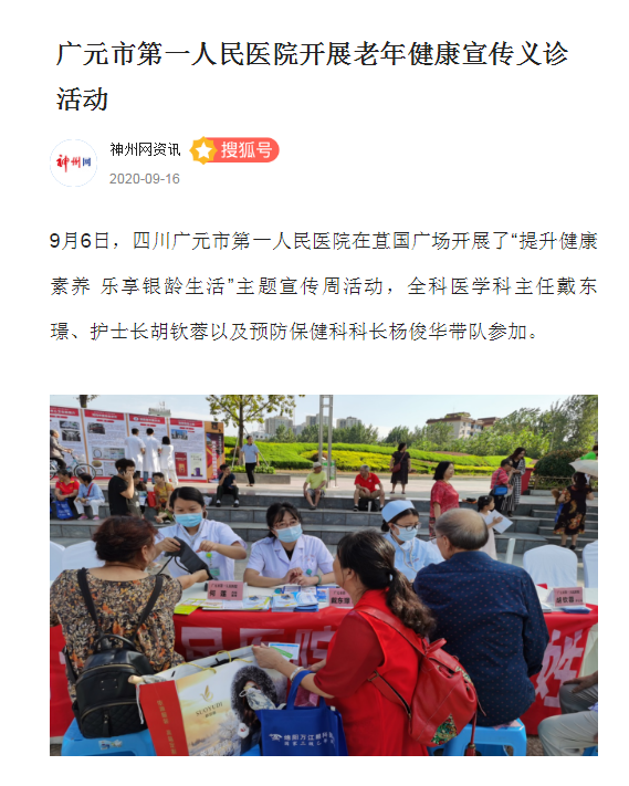 搜狐(神州网):广元市第一人民医院开展老年健康宣传义诊活动