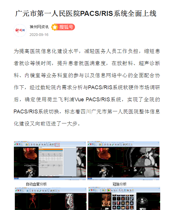 搜狐(神州网):广元市第一人民医院PACS/RIS系统全面上线