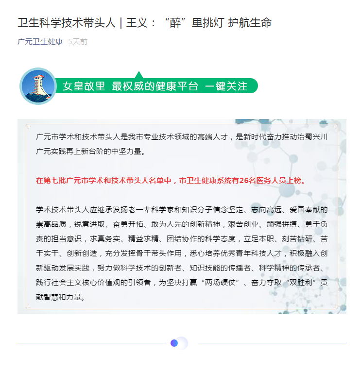 广元卫生健康:卫生科学技术带头人 | 王义:“醉”里挑灯 护航生命