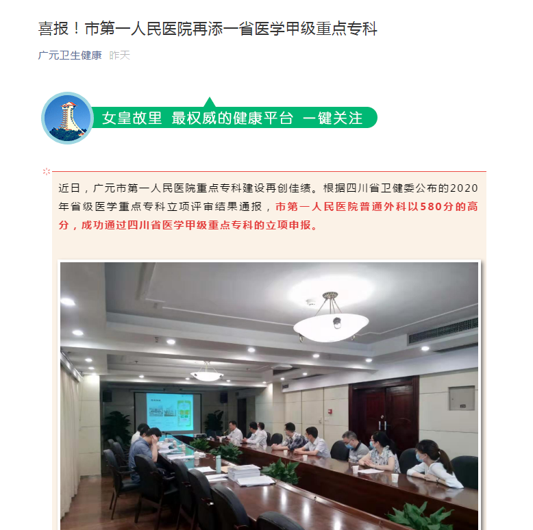 广元卫生健康:喜报!市第一人民医院再添一省医学甲级重点专科