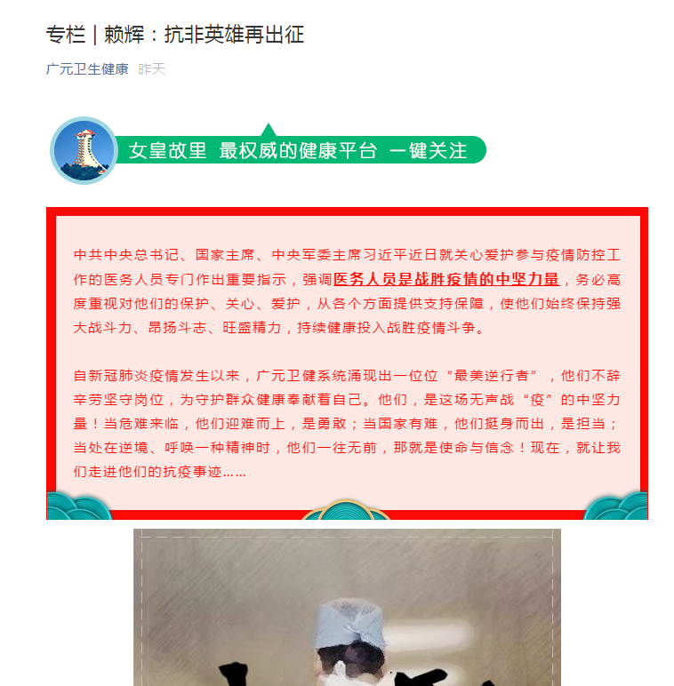 广元卫生健康:专栏 | 赖辉:抗非英雄再出征