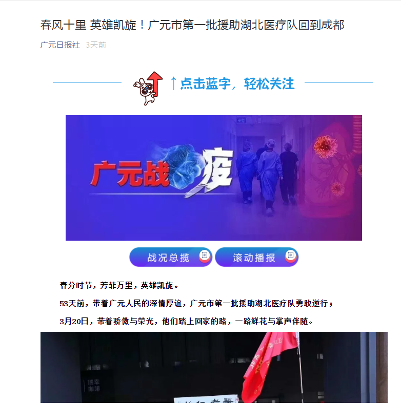 广元日报微信:春风十里 英雄凯旋!广元市第一批援助湖北医疗队回到成都