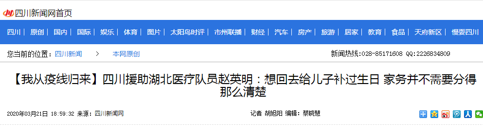 四川新闻网:【我从疫线归来】四川援助湖北医疗队员赵英明:想回去给儿子补过生日 家务并不需要分得那么清楚
