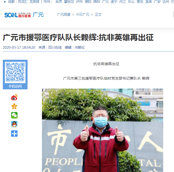 四川在线:广元市援鄂医疗队队长赖辉:抗非英雄再出征