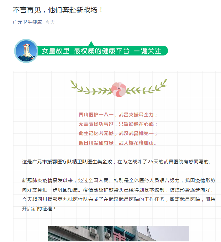广元卫生健康:不言再见,他们奔赴新战场!