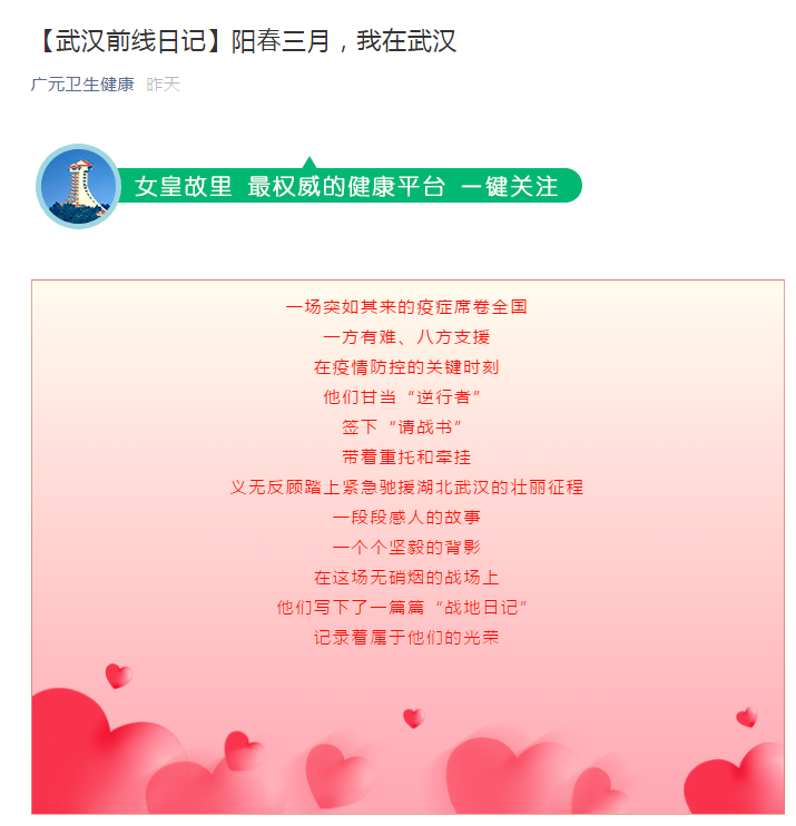 广元卫生健康:【武汉前线日记】阳春三月,我在武汉