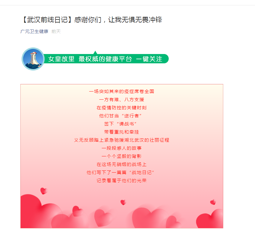 广元卫生健康:【武汉前线日记】感谢你们,让我无惧无畏冲锋