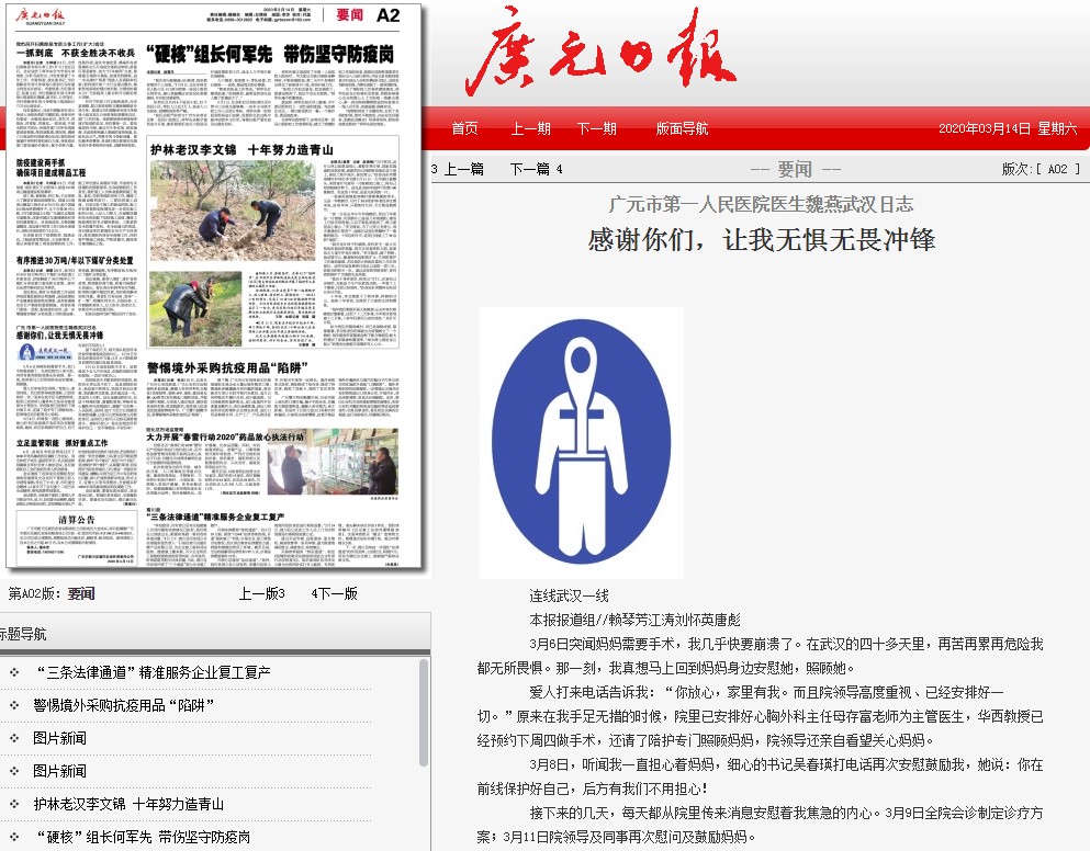 广元日报:广元市第一人民医院医生魏燕武汉日志 感谢你们,让我无惧无畏冲锋