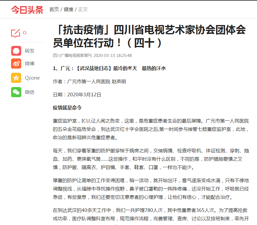 今日头条:广元 【武汉战地日志】最冷的冬天 最热的汗水