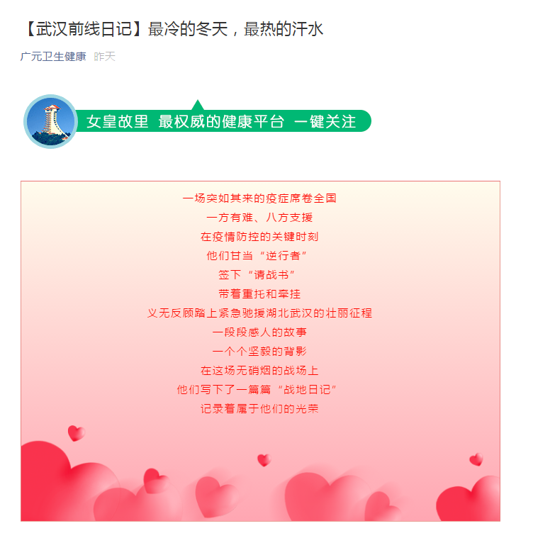 广元卫生健康:【武汉前线日记】最冷的冬天,最热的汗水
