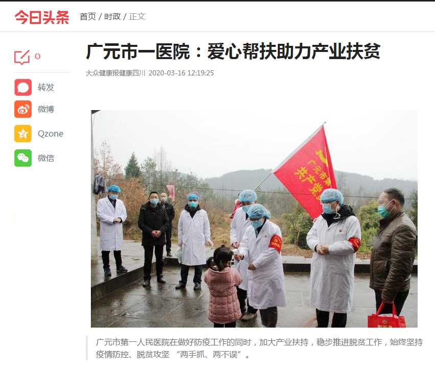 今日头条:广元市一医院:爱心帮扶助力产业扶贫
