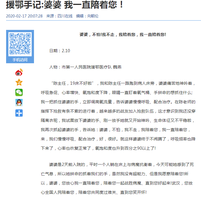 四川在线:援鄂手记:婆婆 我一直陪着您!