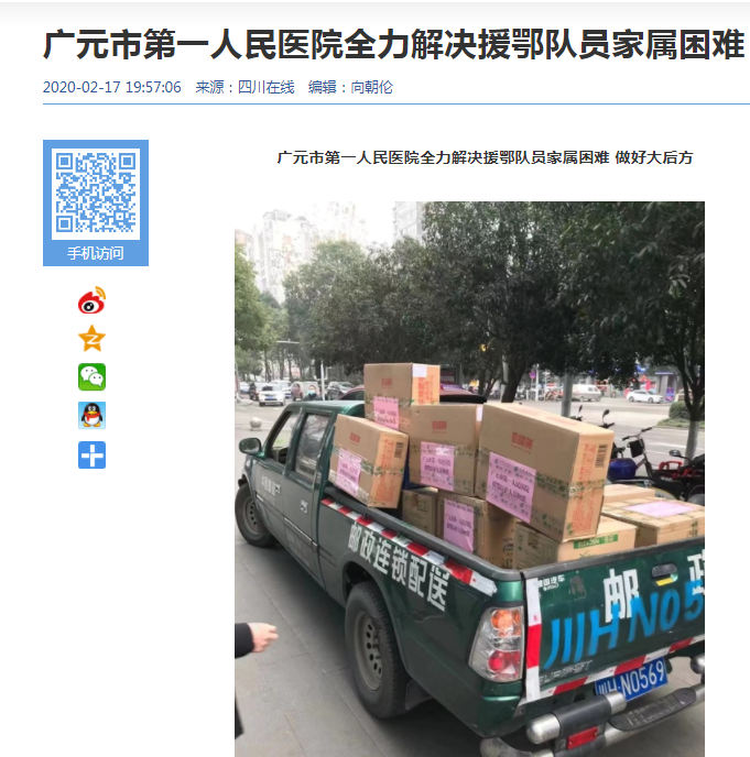四川在线:广元市第一人民医院全力解决援鄂队员家属困难
