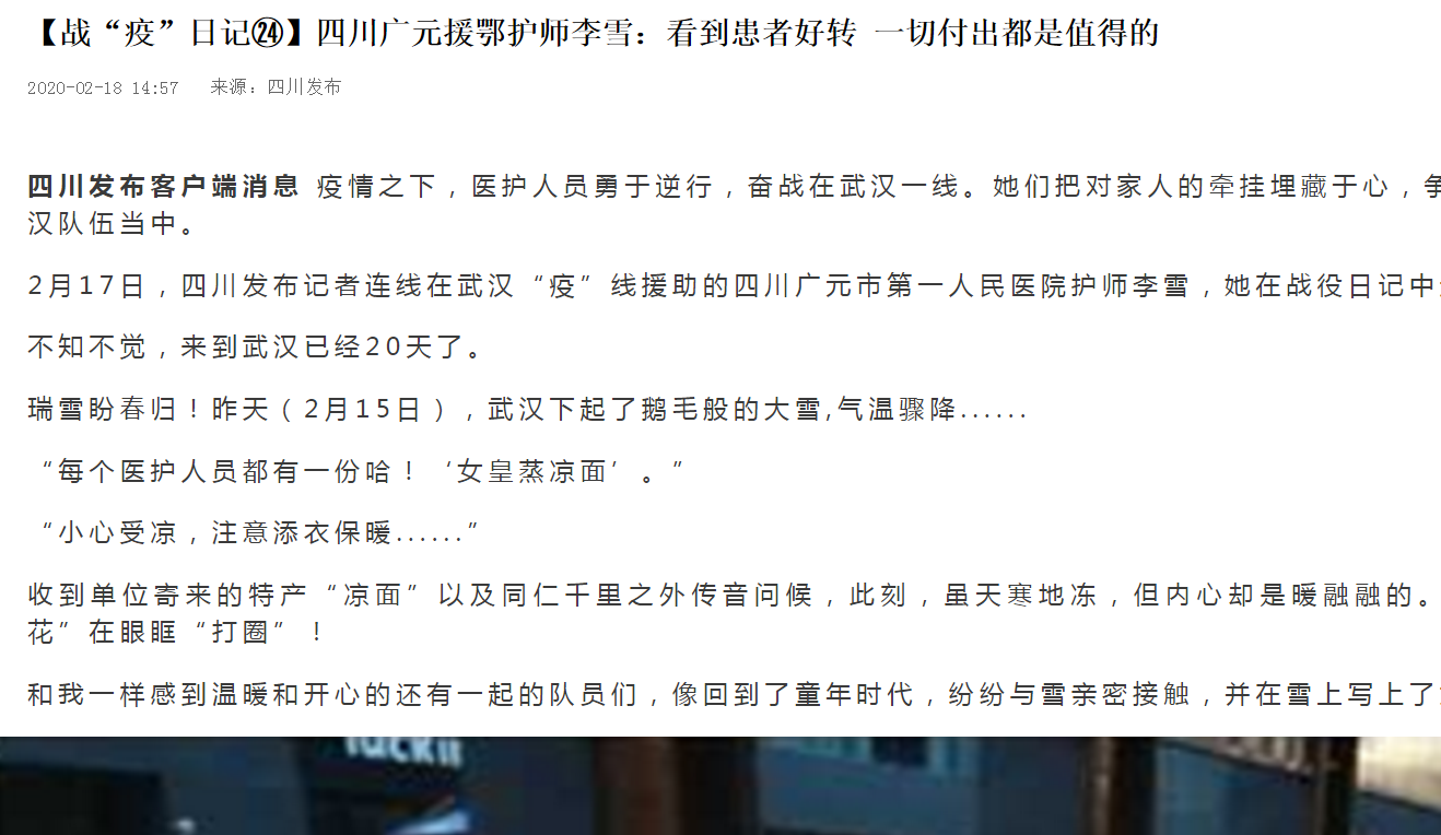 四川发布:【战“疫”日记㉔】四川广元援鄂护师李雪:看到患者好转 一切付出都是值得的