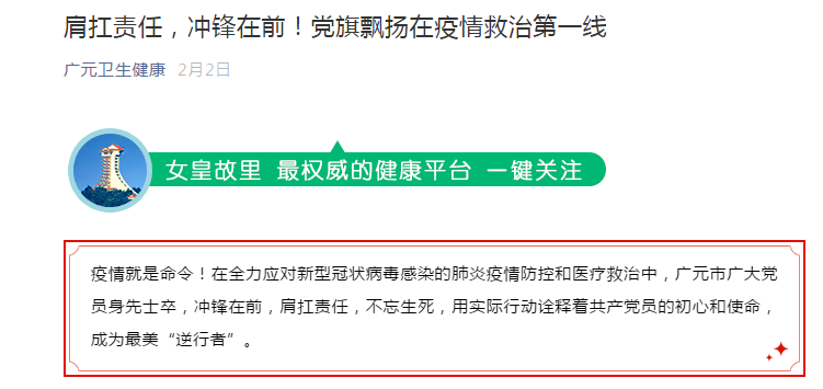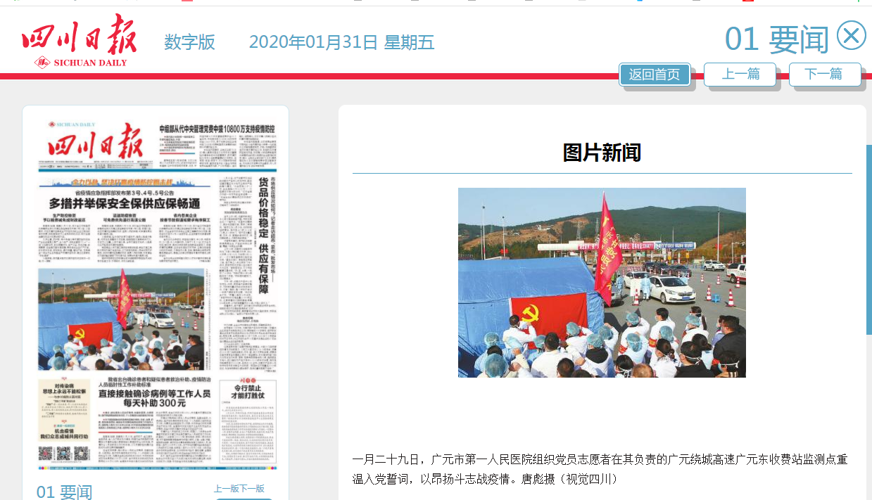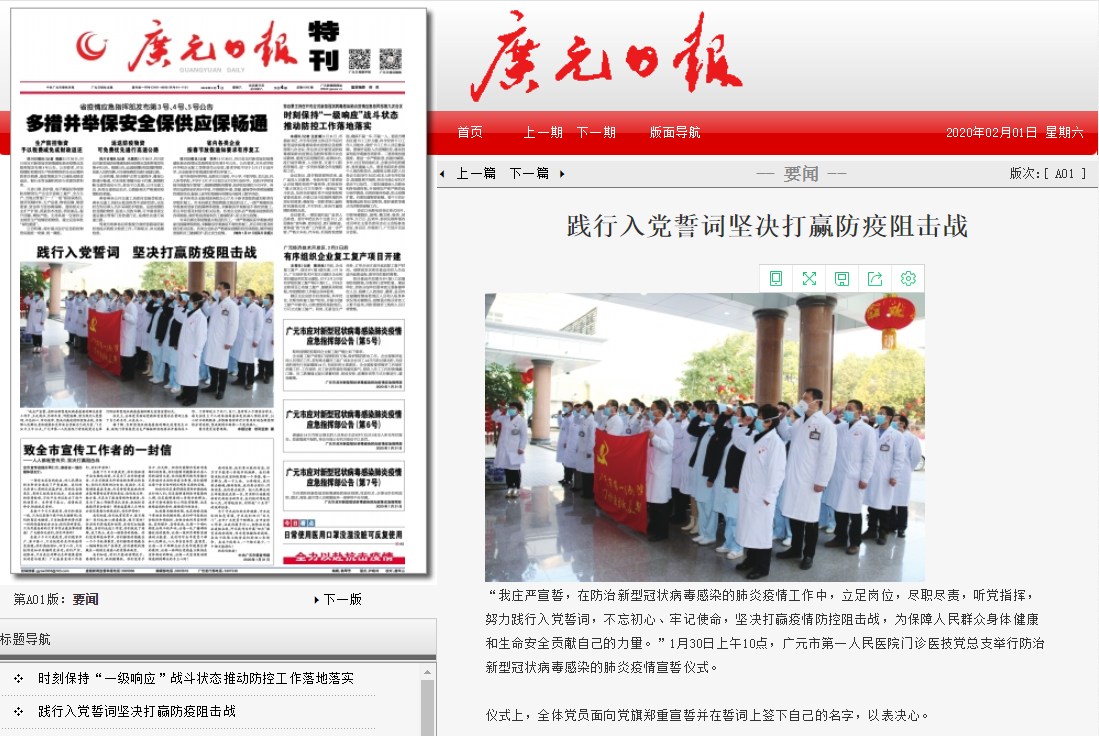广元日报:践行入党誓词坚决打赢防疫阻击战