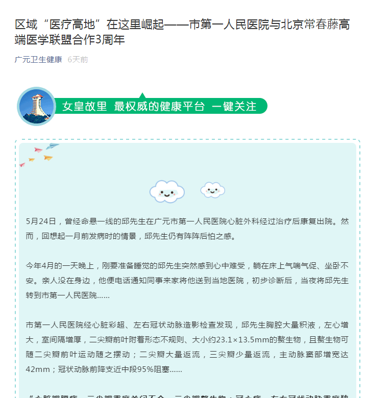 广元日报:区域“医疗高地”在这里崛起 ——写在市第一人民医院与北京常春藤高端医学联盟合作3周年之际