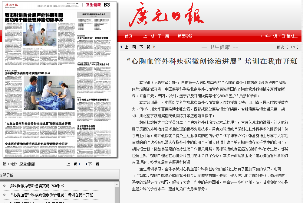 广元日报:“心胸血管外科疾病微创诊治进展”培训在我市开班